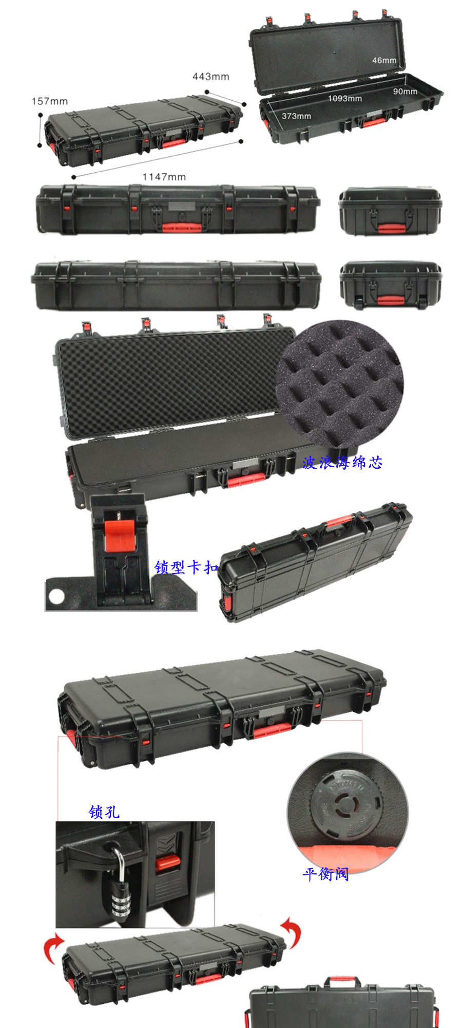 簡要說明:廣泛用于傳媒、公安、消防、軍隊、航空、戶外攝影、野外考察、科學(xué)探測等眾多領(lǐng)域的高端儀器、儀表。具有高強度、高抗壓沖擊、防潮、絕對密封、防塵、防水等特點。產(chǎn)品材質(zhì):ABS原料,箱體采用高抗沖擊的高分子聚合材料一體注塑成型,密封采用扁型彈性發(fā)泡密封橡膠條,確保防水氣密,所有較軸均采用不銹鋼材質(zhì)。